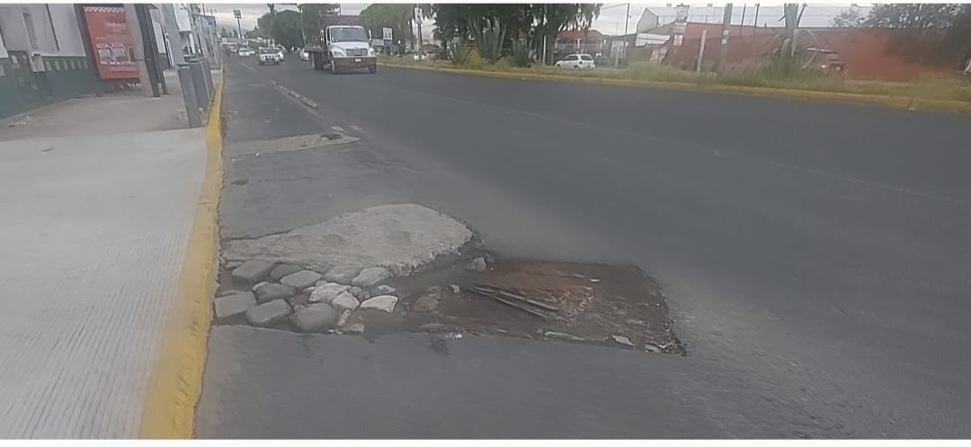 Un tremendo bache pone en riesgo a ciclistas que circulan por el bulevar Forjadores, antes de llegar al crucero de Plaza San Diego,
