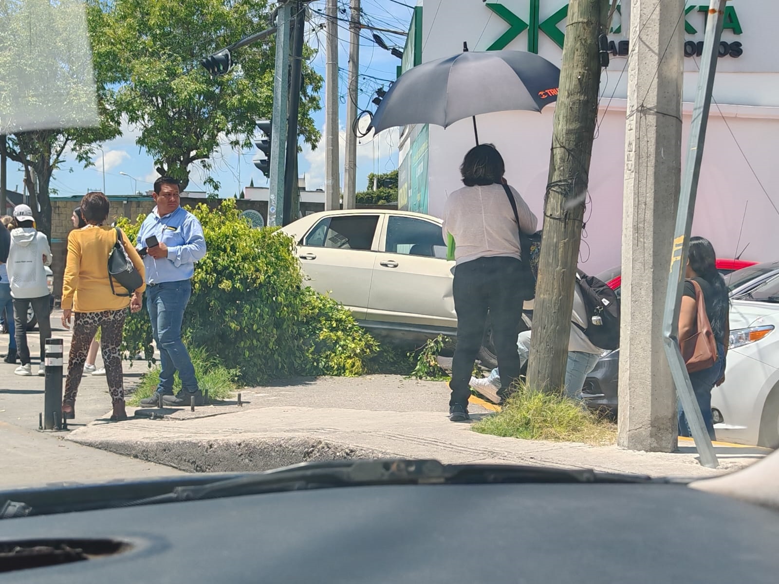 El conductor de este vehículo terminó así en el estacionamiento de un negocio del bulevar Valsequillo y calle San Ignacio de Puebla capital.